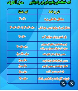 مدل انالوگ ایران راذیاتور مثل مدلm و اکو در مدل های قدیمی ترESوE ارور کدها همگی به همین شکل تعریف شده اند اما اموزشگاه فن برتر اموزش تعمیر پکیج در فردیس کرج با اموزش فرمول و الگوریتمی استثنایی شما را از دانستن ارور کد وحتی نوع و مدل دستگاه بی نیاز می کند و شما فارغ و بی توجه به ارور کد ایراد هر نوع پکیج انالوگ و دیجیتالی را به سرعت پیدا خواهید کرد